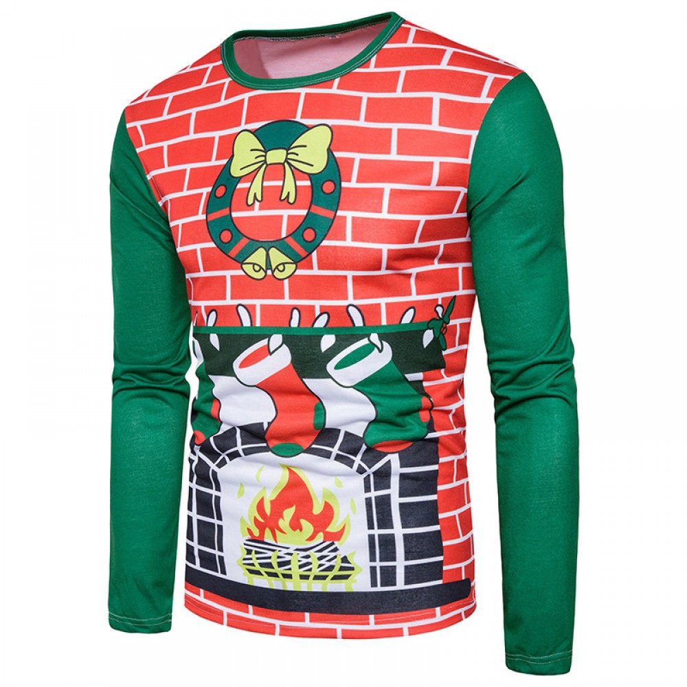 New 3D Personality Fake Two-Piece Printing Fashion Men's Christmas Long-Sleeved T-Shirt