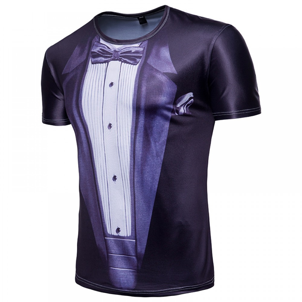 Men's 3D Short-Sleeved T-Shirt Fake Two-Piece Suit Printing Dress Suit T-Shirt Casual