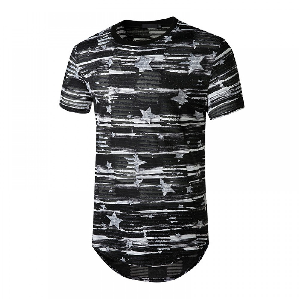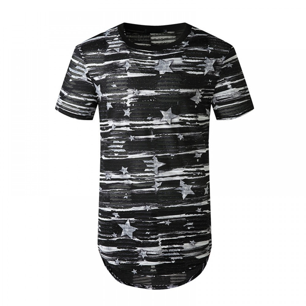 Summer Men's Nightclub Bar Fashion Casual Hot Stamping Printing Short-Sleeved Printed T-Shirt