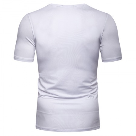 New Summer Men's Casual Mens Short-Sleeved T-Shirt Cotton and Linen Lace Casual Fashion T-Shirt