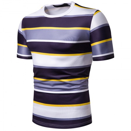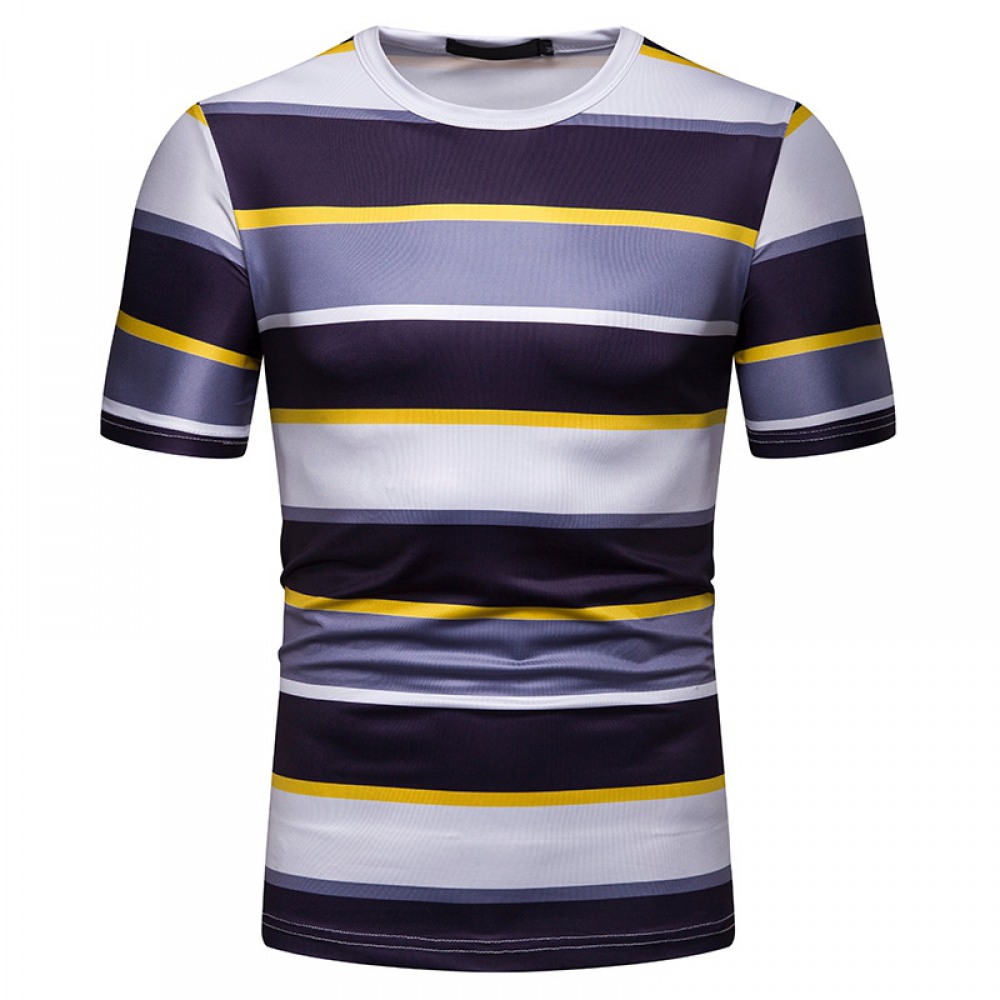 New Summer Men's Short-Sleeved T-Shirt Men's Contrast Striped Slim Casual T-Shirt